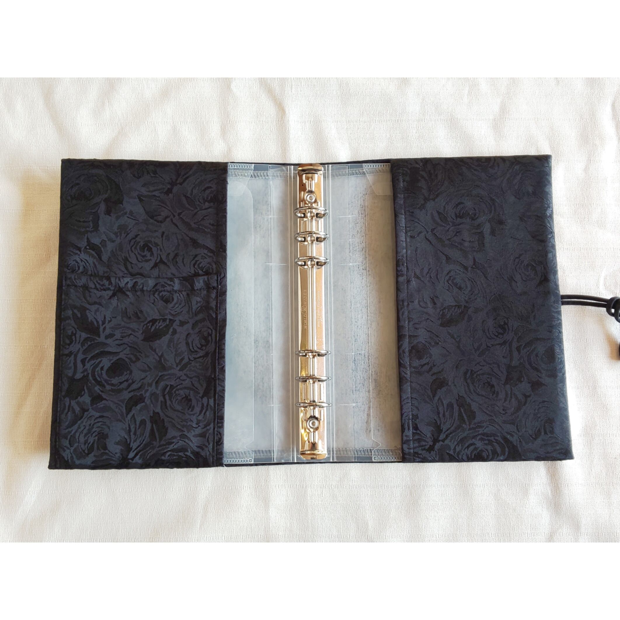 ★NEW★黒色の薔薇柄の手帳カバー