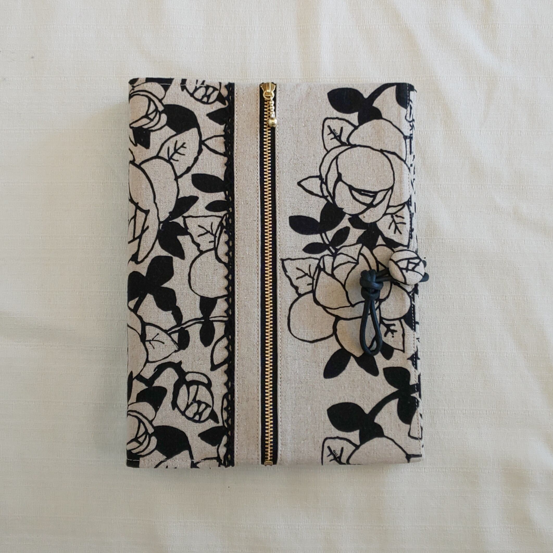 黒の薔薇柄の手帳カバー
