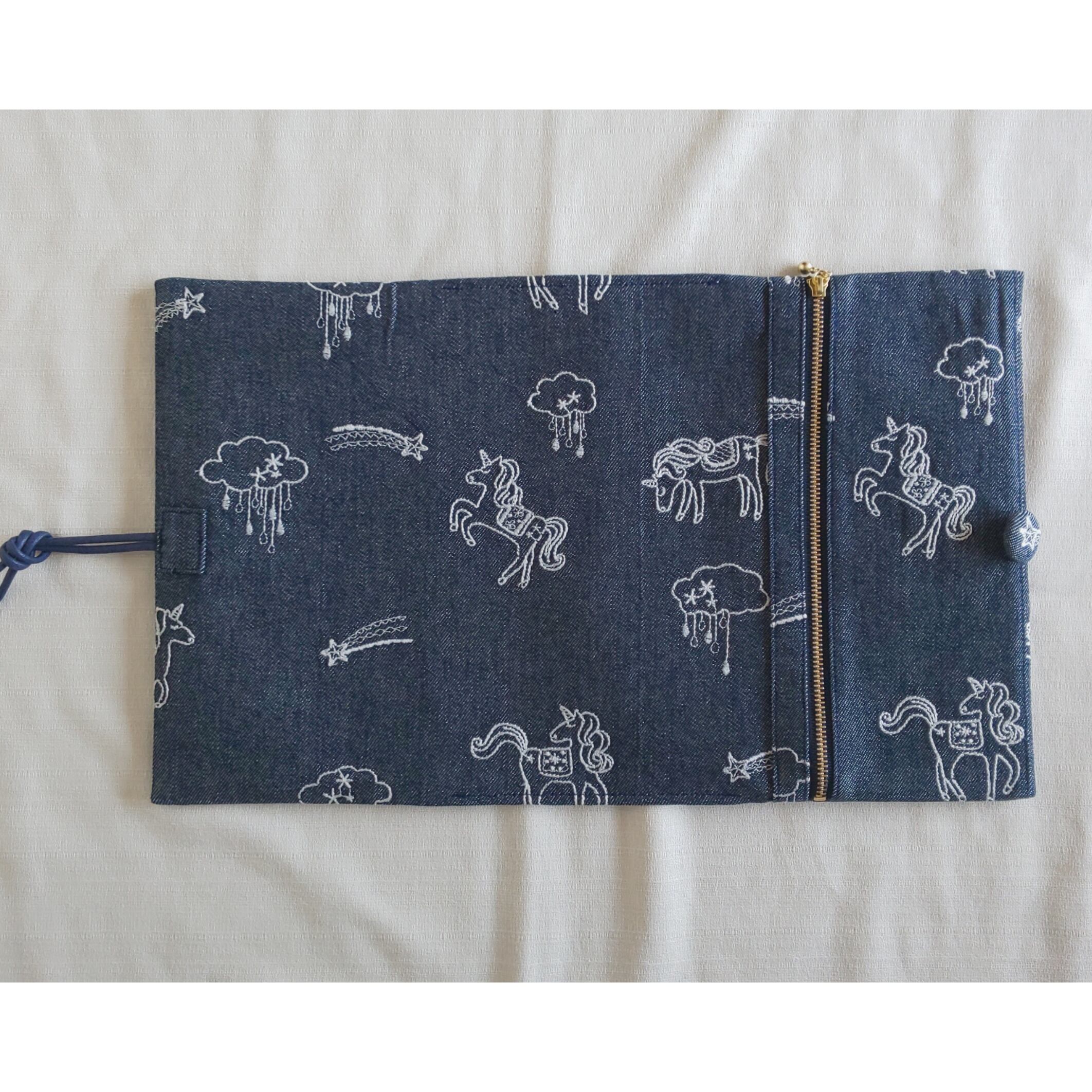 ☆NEW☆デニム刺繍ユニコーン柄の手帳カバー