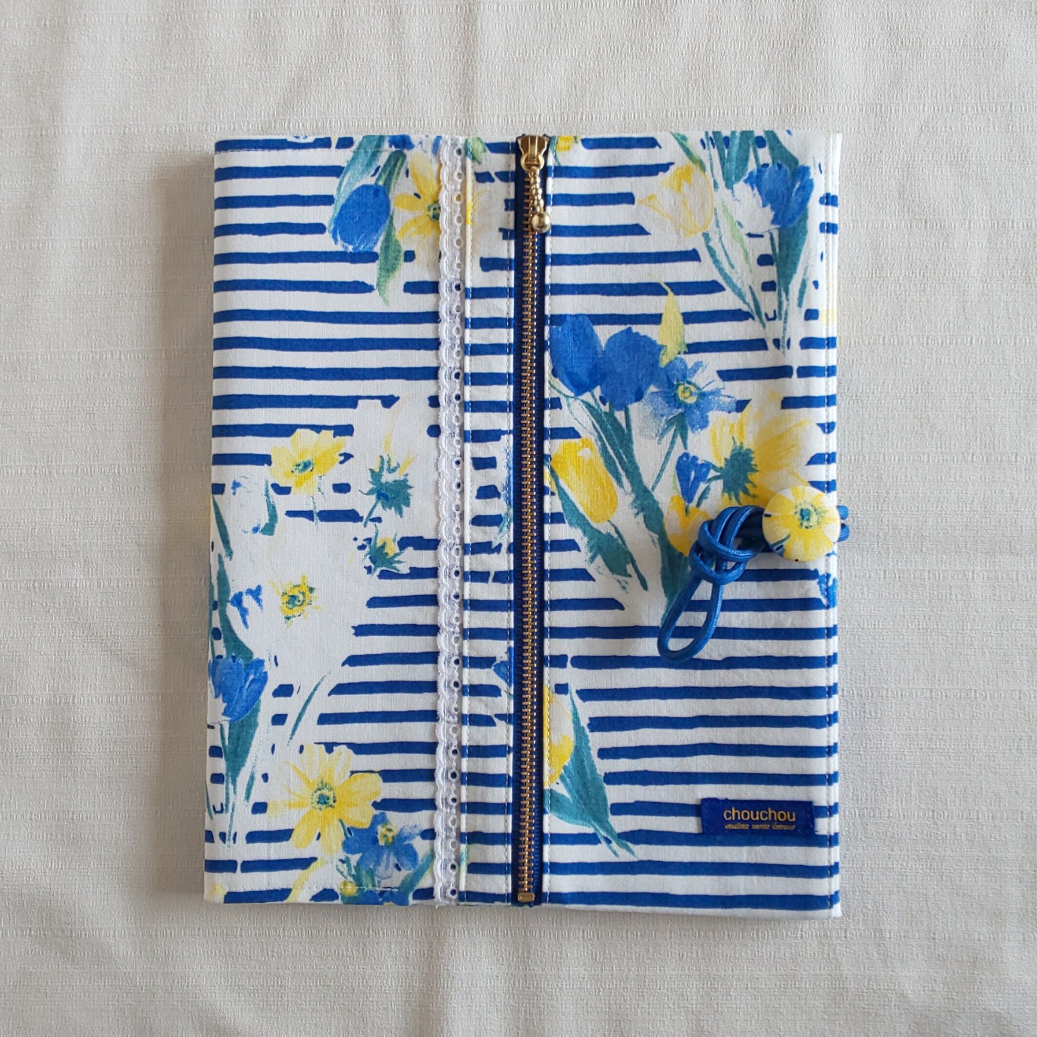 ☆NEW☆青色のボーダー花柄の手帳カバー